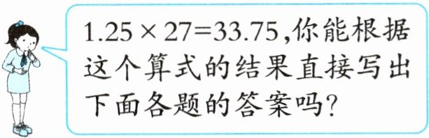 $1.25×27= 33.75$,你能根据这个算式的结果直接写出下面各题的答案吗?