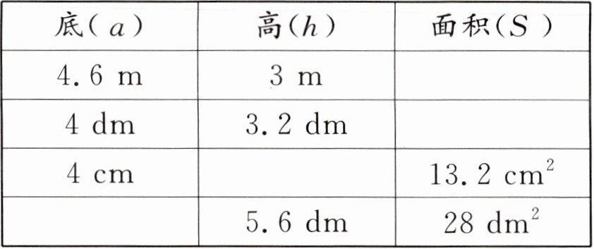 答案:1. $S = a × h = 4.6 × 3 = 13.8(m^{2})$