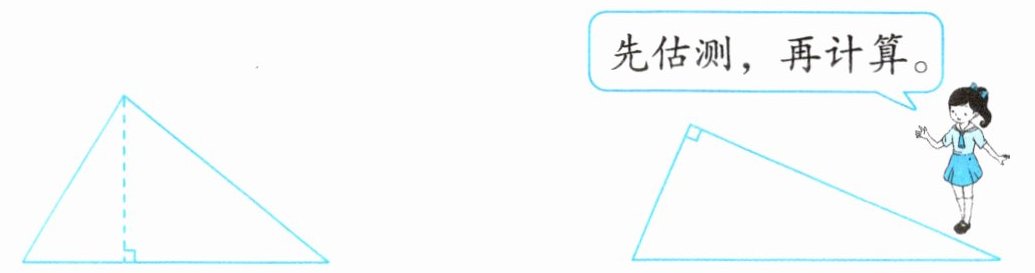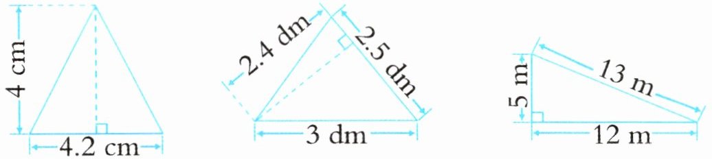 4. 先估测下面各三角形的面积,再测量并计算面积。
