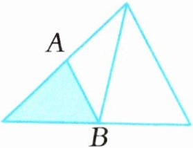 1 下图中大三角形的面积是$20 cm^2,A、$B分别是所在边的中点。求涂色部分的面积。