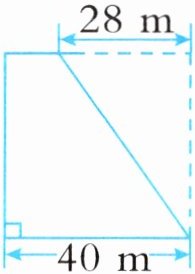 2 如图,有一块直角梯形的地,它的下底是 $40m$。如果上底增加 $28m$,这块地就变成了正方形,原来直角梯形的面积是多少平方米?