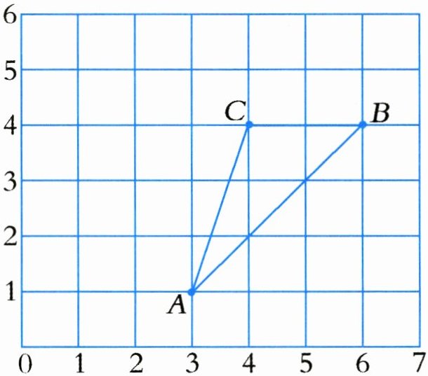 (3)A(1,5)、B(1,1)列相同为竖线,B(1,1)、C(3,1)行相同为横线,竖线与横线垂直,三角形ABC是直角三角形。