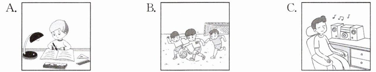 ( )3. 这个男孩正在做什么?
