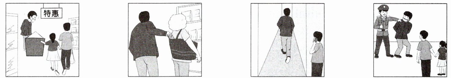 假如你是第一中学的学生李明,周末购物时,你与妹妹目睹了一起盗窃案。请根据下列图片提示,将你们的所见所为写成一篇100词左右的短文。