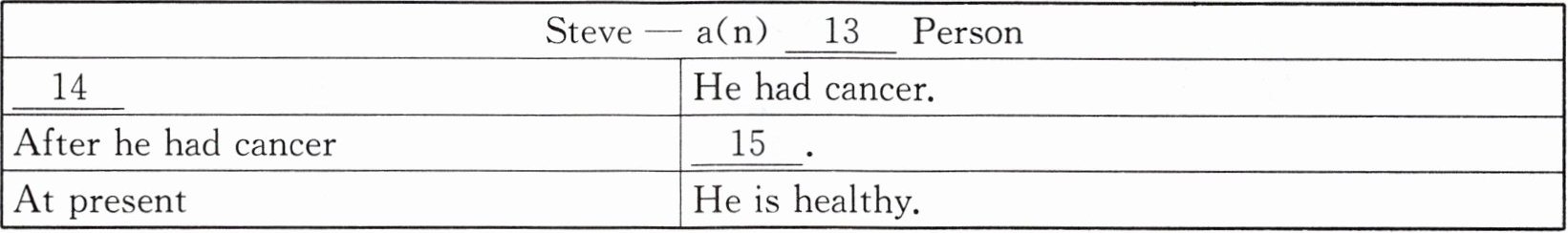 )15. A. He lost a leg,but he fought against cancer bravelyB. There was something seriously wrong with his two legs