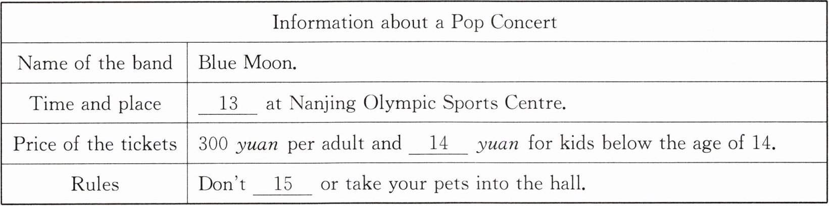 听第一篇短文,回答第 13 - 15 小题。请根据短文内容,选择正确答案,完成信息记录表。答题完毕,请等待“嘀”的信号,进入下一篇短文。