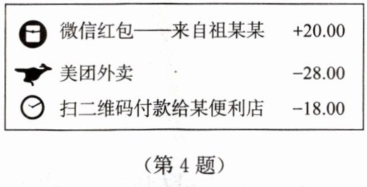 4. 手机移动支付给生活带来便捷,如图是小明的爸爸某天的微信账单的收支明细(正数表示收人,负数表示支出,单位:元),小明的爸爸当天微信收支的最终结果是
