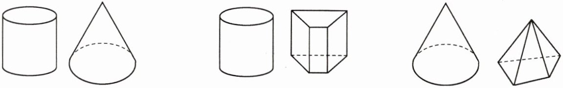 问题 请仔细观察下图中的圆柱与圆锥、圆柱与棱柱、圆锥与棱锥,并比较它们的异同.