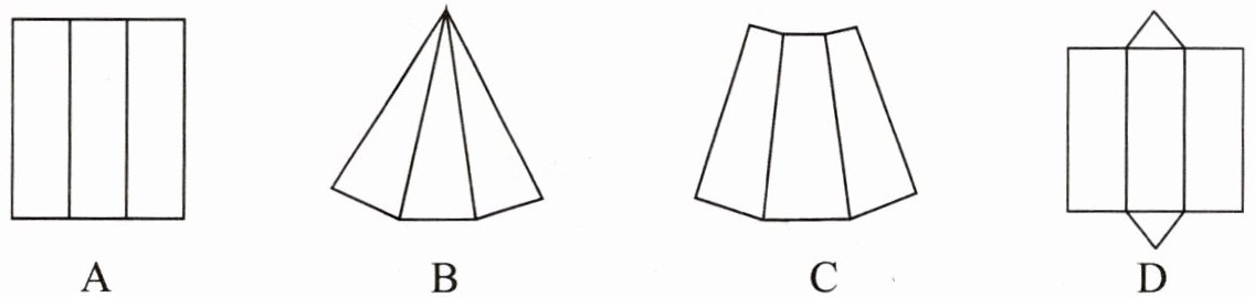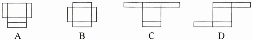 2. 下列四个平面图形中,不能折叠成无盖的长方体盒子的是(