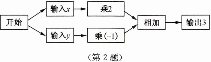 由运算程序得:$2x + (-1)y = 3$,即$2x - y = 3$。