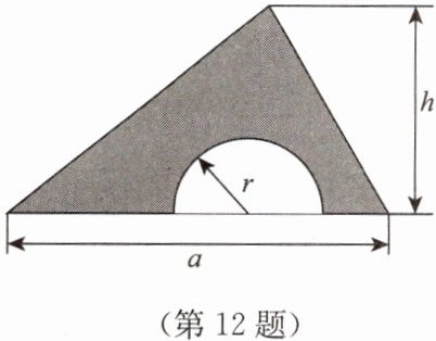 12. 如图,在一个底为 $ a$,高为 $ h$ 的三角形铁皮上剪去一个半径为 $ r$ 的半圆。