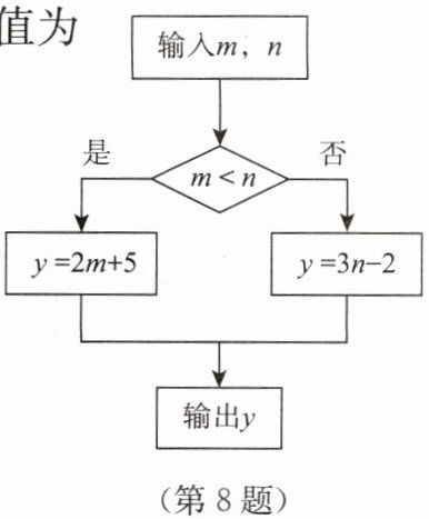 8. 根据如图所示的计算程序计算变量 $ y$ 的值,若输入 $ m = - 3$,$ n = - 2$,则输出 $ y$ 的值是