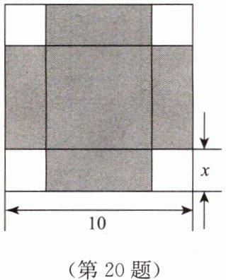 20. (8 分)如图,小明将边长为 $ 10 \, cm $ 的正方形纸片的 4 个角各剪去一个边长为 $ x \, cm $ 的小正方形.