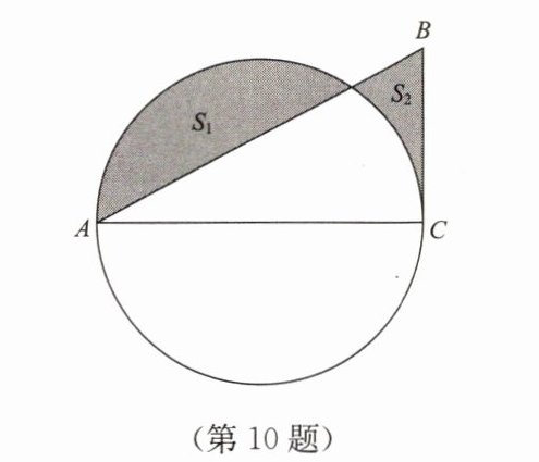 15. 如图,在直角三角形 $ ABC $ 中,$ \angle ACB $ 是直角,$ AC = a $,$ BC = b $,以直角边 $ AC $ 为直径画半圆,则 $ S_{1} - S_{2} = $