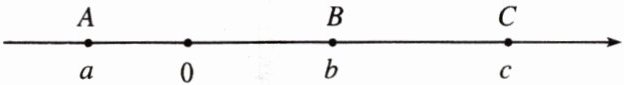 已知$A$,$B$,$C$三点在数轴上的位置如图所示,它们表示的数分别是$a$,$b$,$c$。
