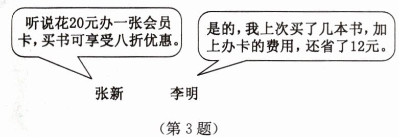 3. 张新和李明相约到图书城去买书,请你根据他们的对话内容,求出李明上次所买书籍的原价总和.(只列方程)