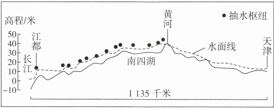 习近平总书记在河南省调研南水北调后续工程时指出,自古以来,我国基本水情一直是夏汛冬枯、北缺南丰,水资源时空分布极不均衡。下图示意南水北调东线工程输水干线纵剖面。据此完成9~11题。