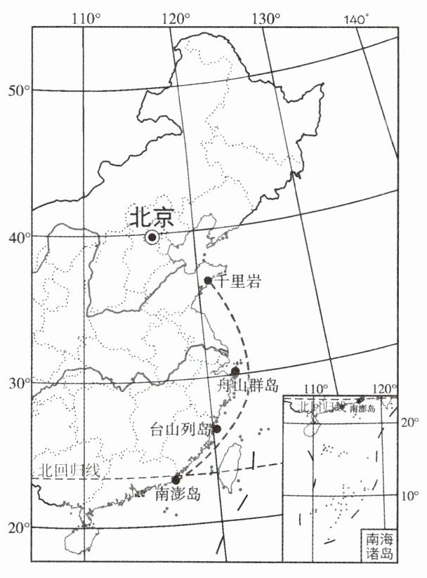 2022年9月1日,产自全球首艘10万吨级智慧渔业大型养殖工船“国信1号”的首批大黄鱼起鱼上市,其品质可媲美野生大黄鱼。该船以“船载舱养”模式,将养殖区域由近岸推向深远海,利用深远海优质海水资源,开展大黄鱼、石斑鱼、大西洋鲑等名贵鱼种养殖。该船根据不同季节水温和环境,在我国部分海域开展游弋式作业。其养殖密度是传统网箱的4~6倍,养殖周期可缩短1/4以上。右图为“国信1号”游弋路线图。