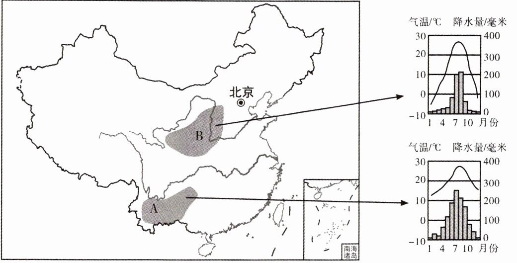 (1)简述我国A、B地区共同的气候特征。(4分)