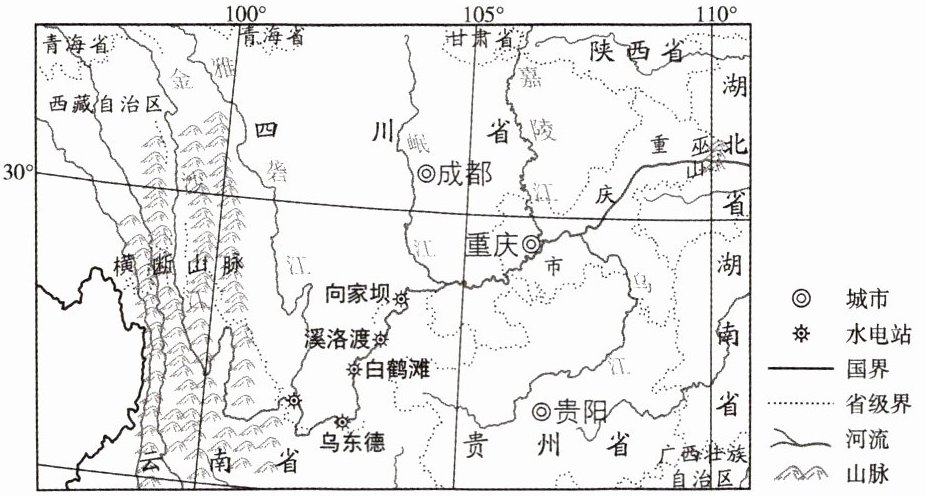 (1)分析在金沙江上修建水电站的自然条件。(4分)