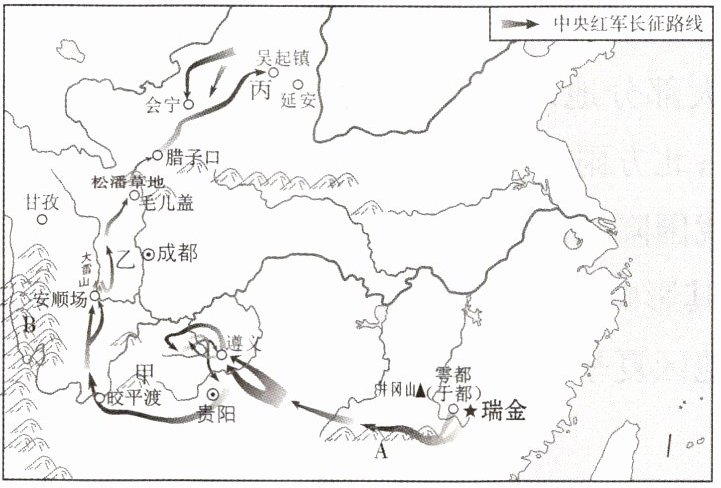 级阶梯。(2)“红军不怕远征难”,红军依次经过了甲