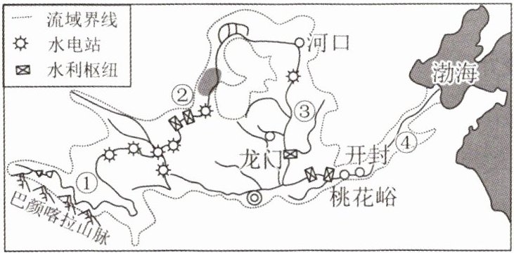 自古以来,黄河不断被文人墨客吟诵和赞美。读黄河流域图,完成 2~4 题。