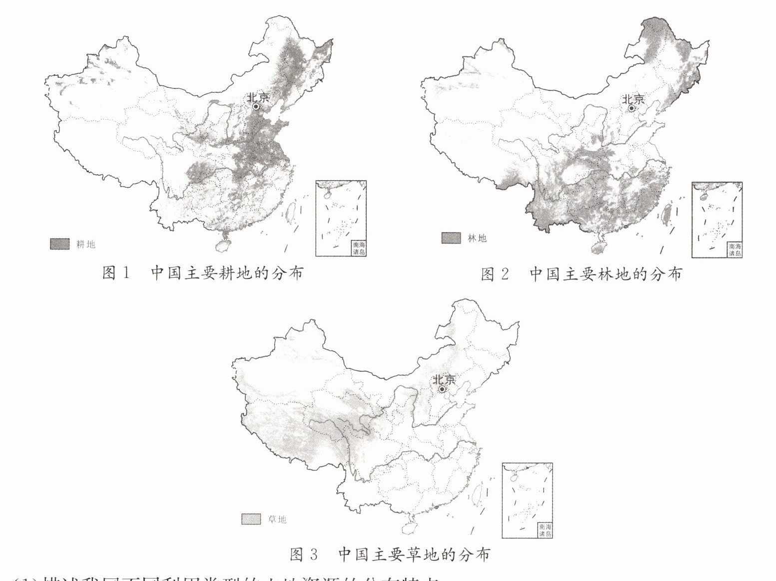(1)描述我国不同利用类型的土地资源的分布特点。