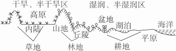 2. 下图为我国部分地区土地资源分布简图。下列关于该地区土地资源分布的叙述,正确的是(