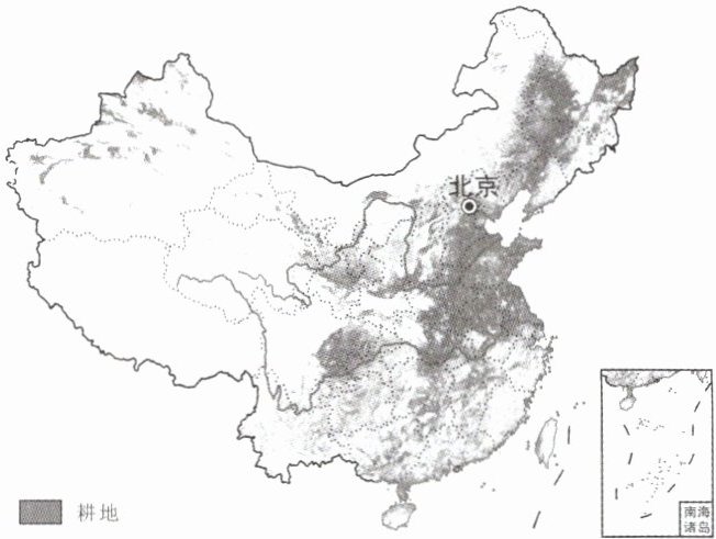 下图为中国主要耕地的分布图。据此完成3~4题。