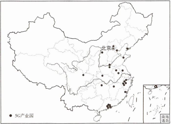 1. 第五代移动通信技术(简称5G),是具有高速率、低时延和大连接特点的新一代宽带移动通信技术,是实现人机物互联的网络基础设施。作为5G产业发展的主要载体,5G产业园建设成为5G发展的重要举措。下图为中国5G产业园分布示意图。下列关于我国5G产业园分布特点的叙述,正确的是(