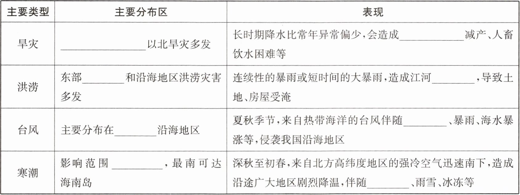 (1)秦岭—淮河线 农作物 平原 泛滥 东南 狂风 广 大风