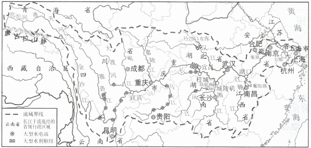 材料二:洞庭湖是长江流域重要的调蓄湖泊,蓄洪能力强,曾多次使长江的洪患化险为夷。自明清开始,洞庭湖的农民开始围湖造田,加之洞庭湖的入湖河流上游植被破坏导致水土流失,泥沙不断淤积,洞庭湖退居我国第二大淡水湖。随着洞庭湖面积的萎缩,调蓄洪水的能力也大大减弱。下图为长江流域示意图。