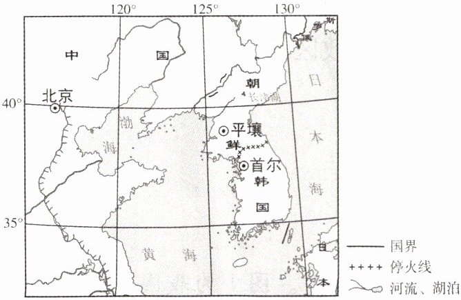 某电影讲述了 1950 年冬天,中国人民志愿军在冰天雪地的长津湖地区展开抗美援朝血战的故事。下图示意长津湖位置。据此完成 3~4 题。