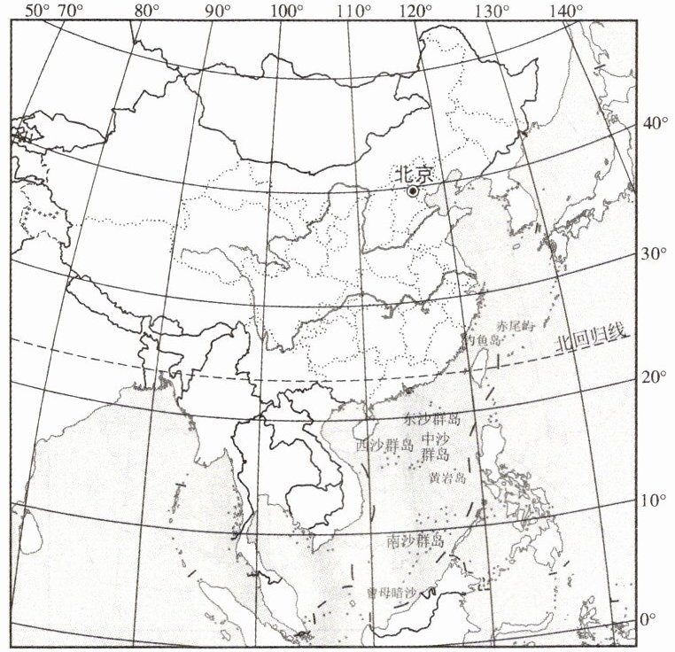 正确的国家版图是国家主权和领土完整的象征,是国家主权的体现形式,每一位中国公民都要有版图意识。下图是我国的疆域图。据此完成 1~2 题。