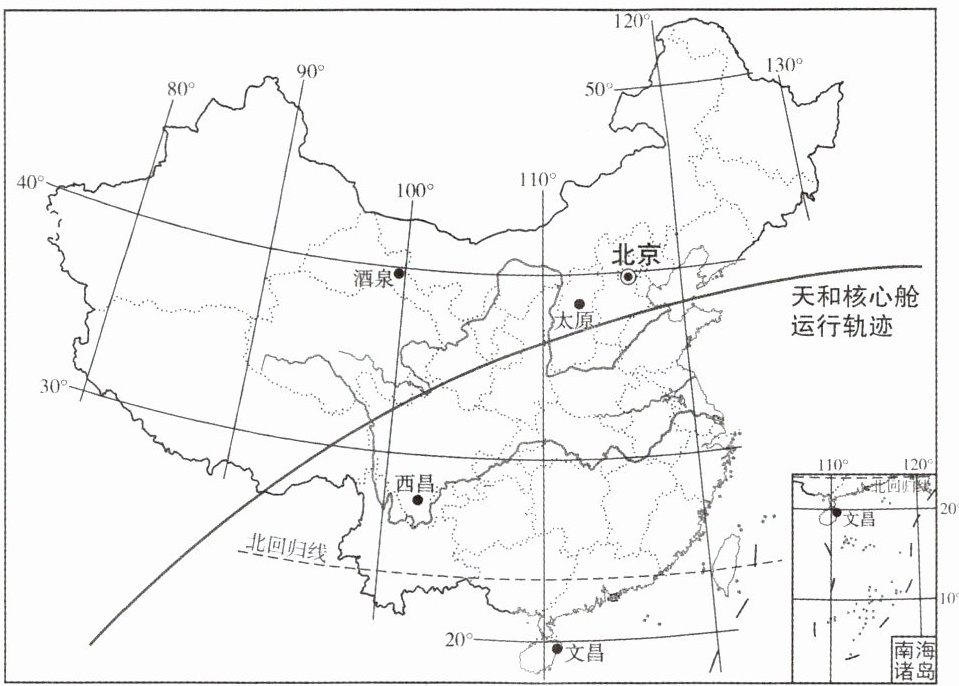 5. 下图为天和核心舱某时刻经过我国上空的运行轨迹示意图,图中天和核心舱运行轨迹穿过的省级行政区有(