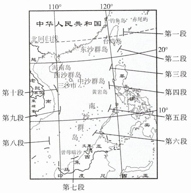 (填岛屿名称)位于第七段线以北,该岛屿属于热