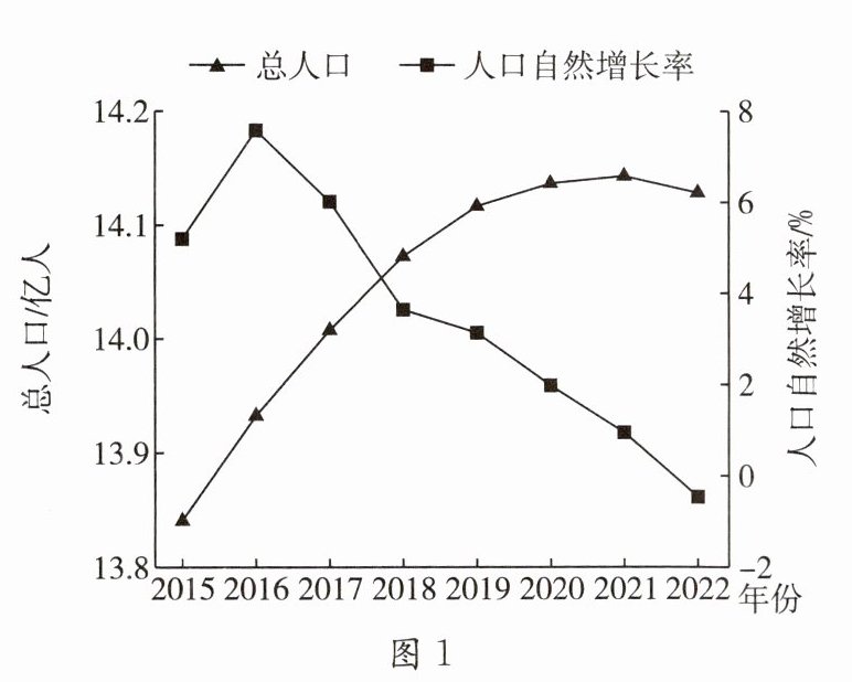 (1)读图 1 可知,2016 年后我国人口增长速度逐渐变