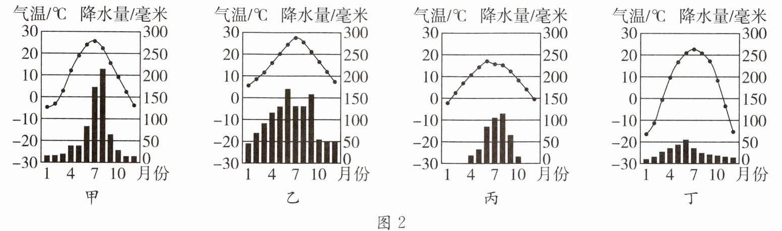 (1)根据材料,请推测图2的甲、乙、丙、丁四地中,最适宜种植苹果的是