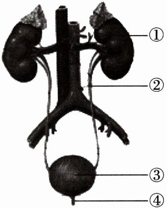 15. 明明在老师的指导下,用超轻黏土和其他材料制作了一个泌尿系统结构模型(如右图所示)。图中①表示的结构和构成①结构和功能的基本单位分别是( )