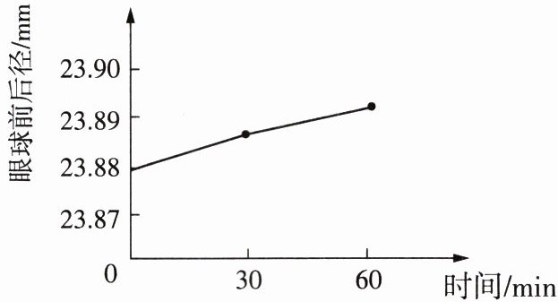 (4)科研人员请视力正常的成年志愿者在弱光照下阅读一段时间,然后测量其眼球前后径变化,结果如下图所示。与阅读前相比较,志愿者在弱光照下阅读后的眼球前后径变______,推测_________________可能是引起近视的原因之一。