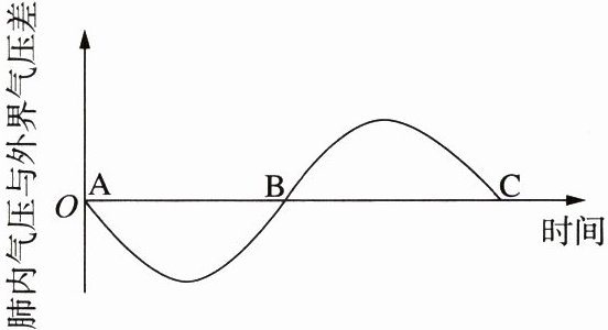 14. 下图表示某人呼吸过程中,肺内气压与外界气压差值的变化曲线。下列有关说法正确的是( )