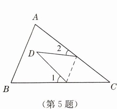 5. 如图,在三角形纸片$ABC$中,$\angle A = 65^{\circ}$,$\angle B = 75^{\circ}$。将纸片的一角折叠,使点$C落在\triangle ABC$内,若$\angle 2 = 20^{\circ}$,则$\angle 1 = $