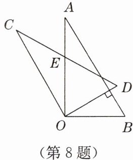 8. 将两块含$30^{\circ}$角的直角三角板叠放成如图所示图形,若$OD \perp AB$,$CD交OA于点E$,则$\angle OED = $
