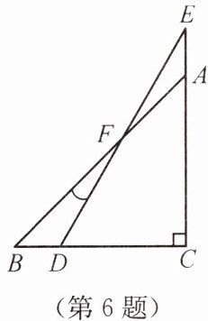 6. 如图,分别含有$30^{\circ}和45^{\circ}$角的两个直角三角板,拼成如图所示图形,其中$\angle C = 90^{\circ}$,$\angle B = 45^{\circ}$,$\angle E = 30^{\circ}$,则$\angle BFD$的度数是