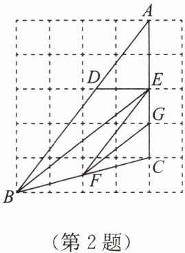 2. 在如图所示的网格中,每个小正方形的边长均为1,△ABC的顶点均在格点上,则△ABC的重心在(