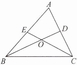 ∵点O为△ABC的重心,∴BD、CE为△ABC的中线,D、E分别为AC、AB中点,且BO:OD=2:1,CO:OE=2:1。