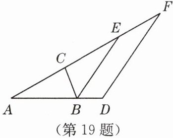 (2)过点 $D$ 作 $DF // BE$,交 $AC$ 的延长线于点 $F$,求 $\angle F$ 的度数。