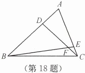 18. (7 分)如图,$\angle A = 70^{\circ}$,$\angle ABE = 35^{\circ}$,$\angle ACD = 25^{\circ}$。求 $\angle BFC$ 的度数。