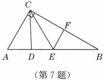 7. 如图,在$\triangle ABC$中,$\angle ACB = 90^{\circ}$,$\triangle CAD \cong \triangle CED$,$\triangle CEF \cong \triangle BEF$,$\triangle CEF \cong \triangle CAD$.
