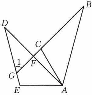 如图,已知$\triangle ABC \cong \triangle ADE$,$AB = AD$,$AC = AE$,$BC的延长线交DA于点F$,交$DE于点G$,$\angle AED = 105^{\circ}$,$\angle CAD = 15^{\circ}$,$\angle B = 30^{\circ}$,求$\angle 1$的度数.